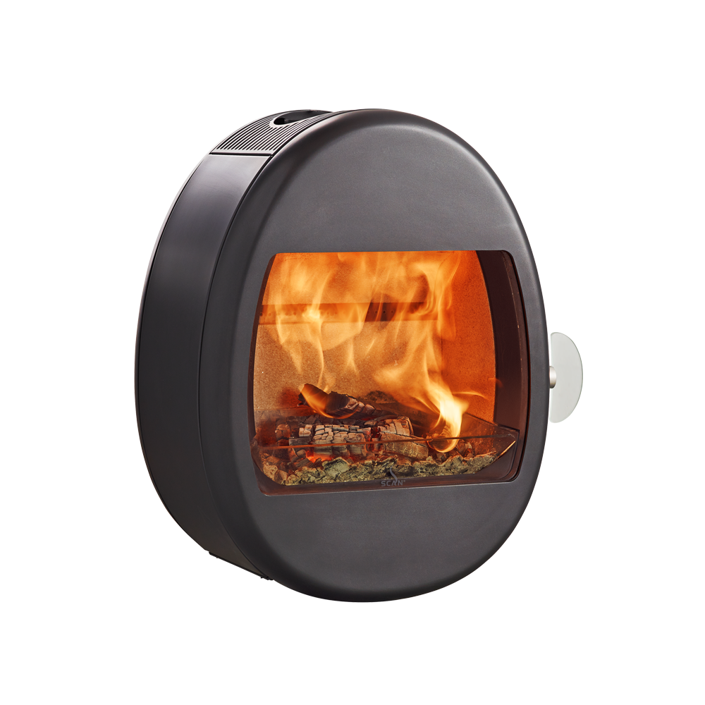 Scan 66-1 es la versión mural de la serie Scan 66. El discreto soporte mural da la impresión de que la estufa flota en la pared.