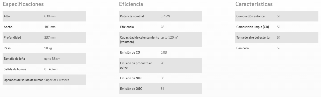 Especificaciones: